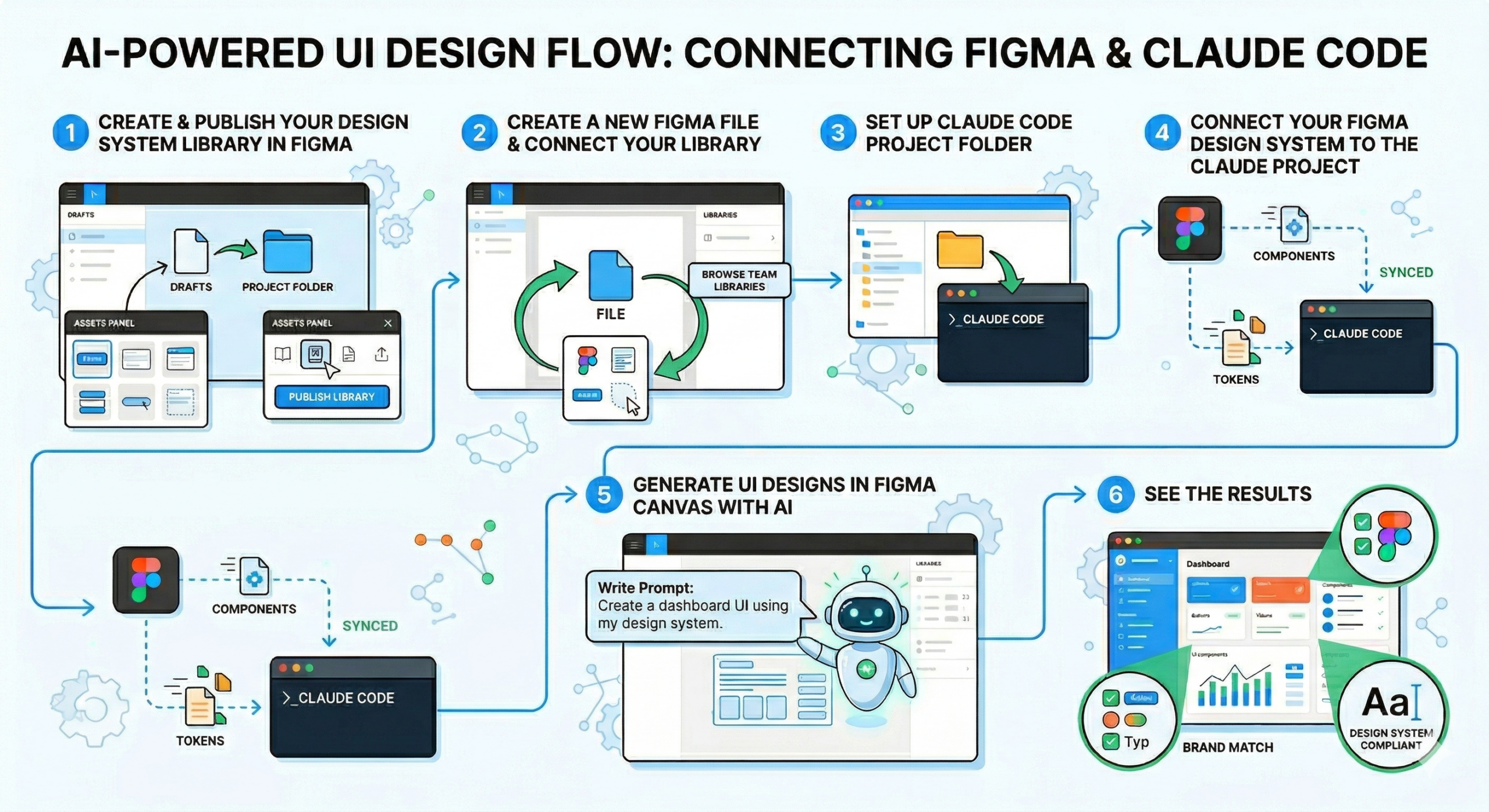 It didn’t generate random shapes or placeholder layouts. It pulled real component instances from the library, respected the token structure, and flagged a color that deviated from the system — then corrected it automatically.